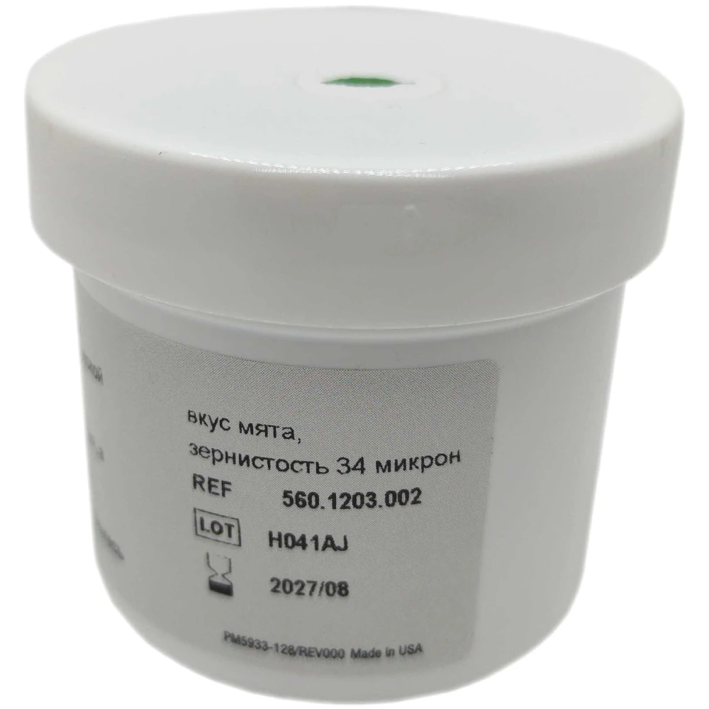 - Паста доступна в мятном и вишневом вкусах, средней (29 микрон) и крупной (34 микрон) зернистости.
