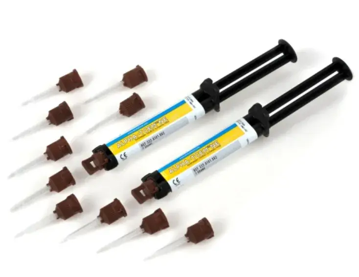Alpha-TCem NE - это временный цемент, не содержащий эвгенола. Он предназначен для цементирования временных коронок и мостовидных протезов, вкладок и накладок, а также других временных реставраций. Он обеспечивает прочную адгезию к зубу, но при этом позволяет легко снимать временную реставрацию. Картридж быстрого смешивания automix делает Alpha-TCem ™ NE быстрым и простым в использовании.