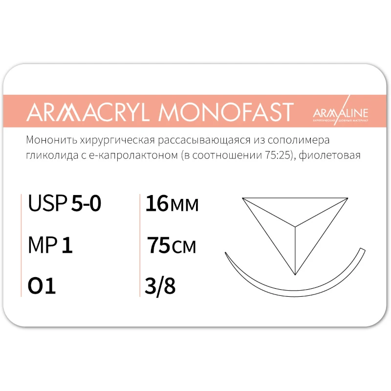ARMACRYL MONOFAST L=75см USP 5/0, игла 16мм 3/8 12шт Armaline