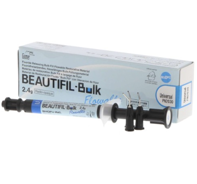 Beautiful Bulk Flowable — это светоотверждаемый, рентгеноконтрастный, текучий пломбировочный материал. Он особенно применим в качестве прокладки для полостей класса I и II, может наноситься долями по 4 мм.
