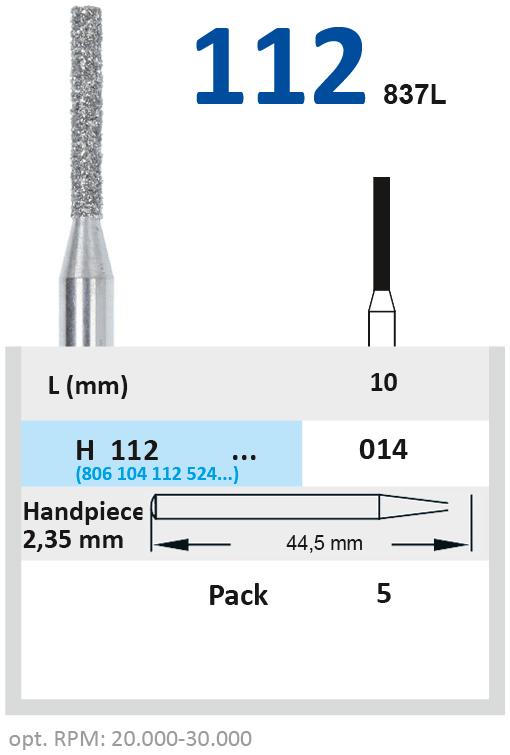 Алмазные боры на гальванической металлической связке для прямого наконечника H112014.Форма бора - цилиндр (длина рабочей части - 10 мм, диаметр рабочей части (1/10 мм) - 014).