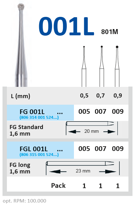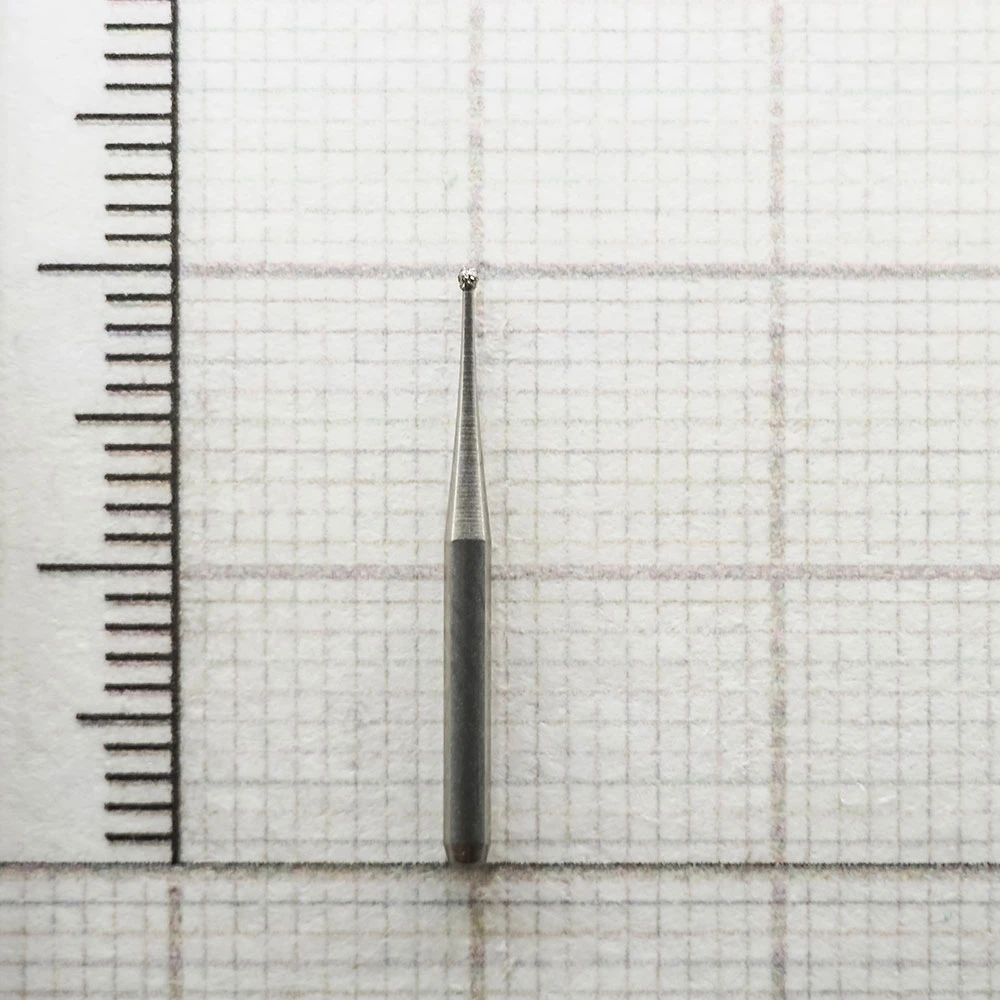 Алмазные боры на гальванической металлической связке для турбинного наконечника FG001L007.Форма бора - шар (длина рабочей части - 0,7 мм, диаметр рабочей части (1/10 мм) - 007).