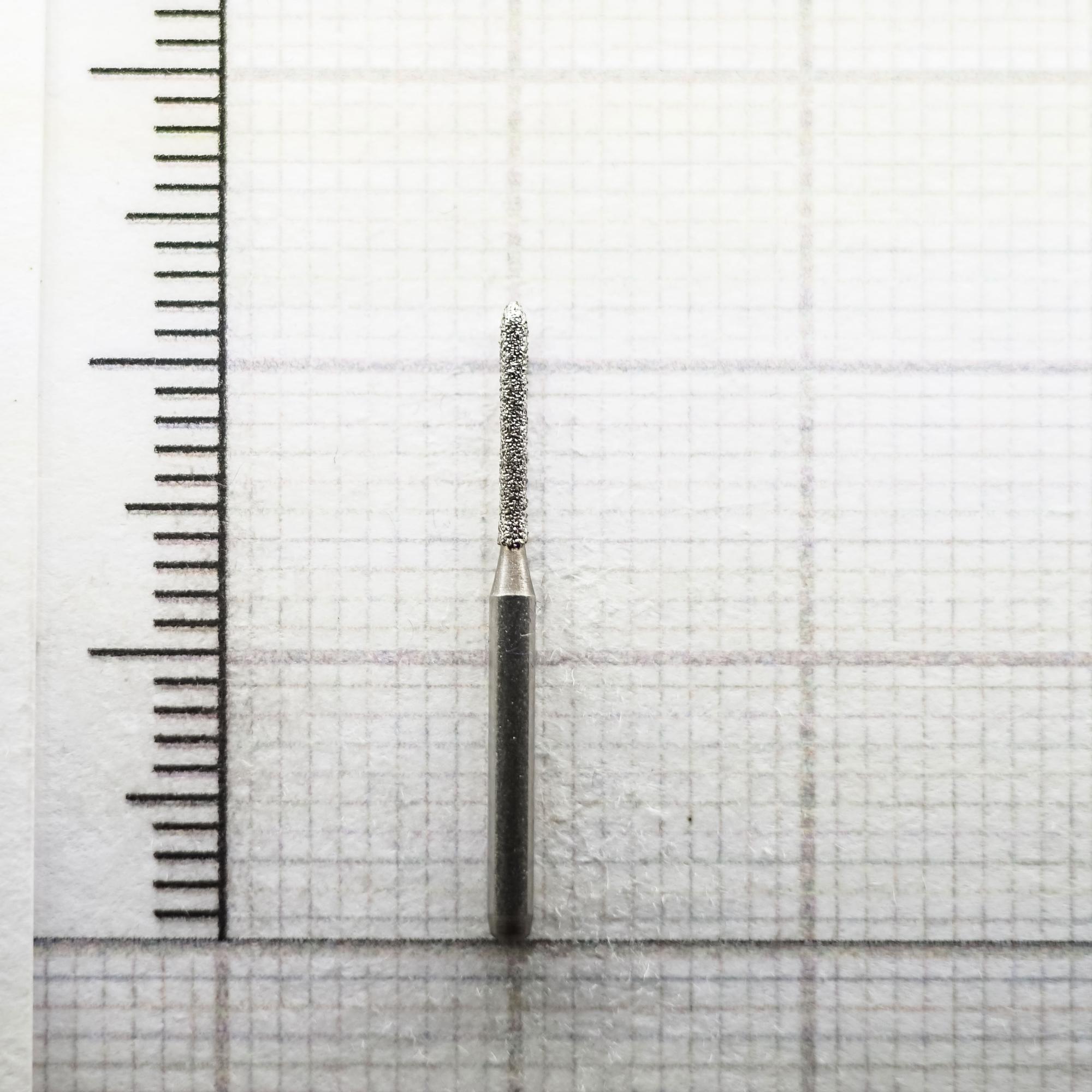 Алмазные боры на гальванической металлической связке для турбинного наконечника FG289010.Форма бора - торпеда (длина рабочей части - 8 мм, диаметр рабочей части (1/10 мм) - 010).