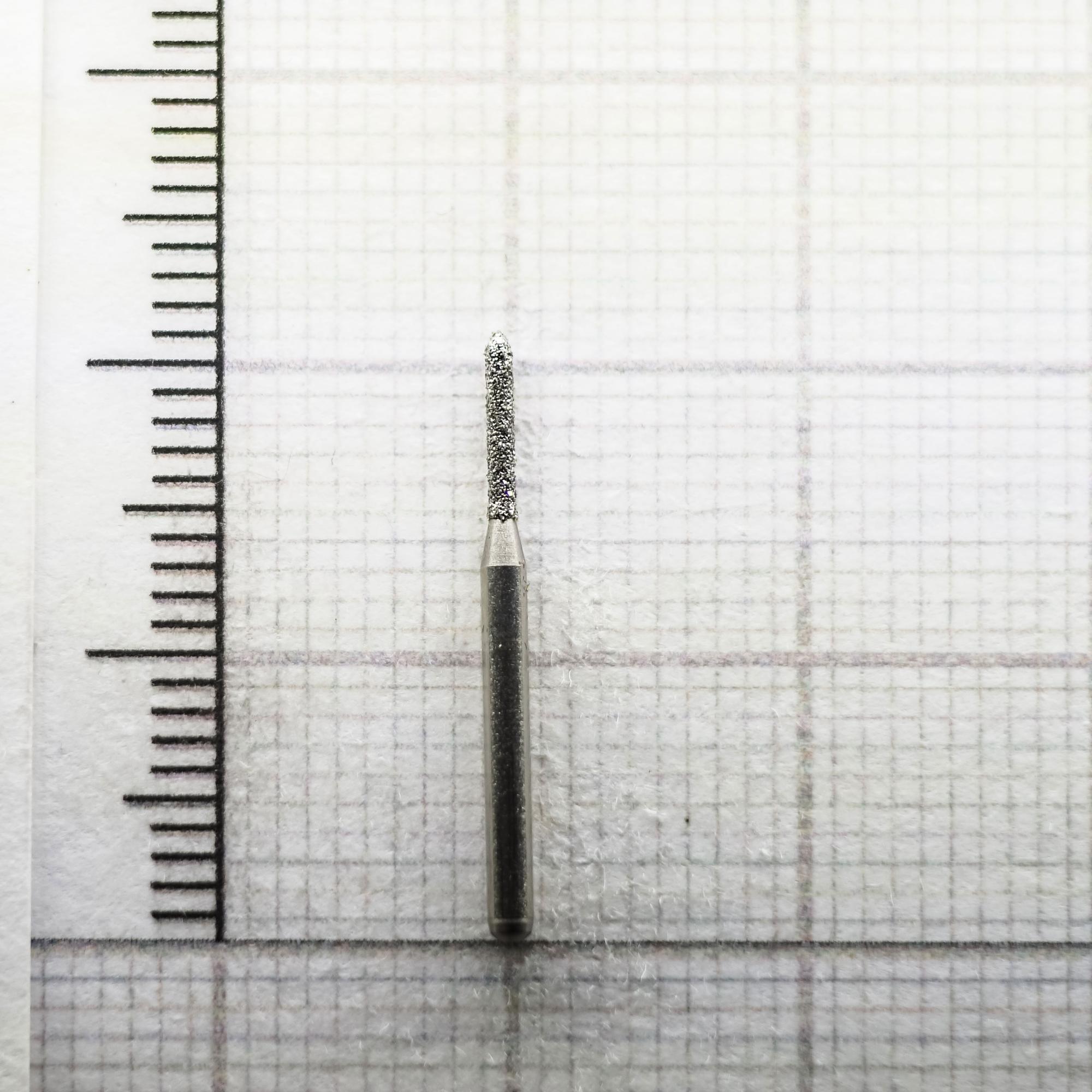 Алмазные боры на гальванической металлической связке для турбинного наконечника FG288010.Форма бора - торпеда (длина рабочей части - 6 мм, диаметр рабочей части (1/10 мм) - 010).