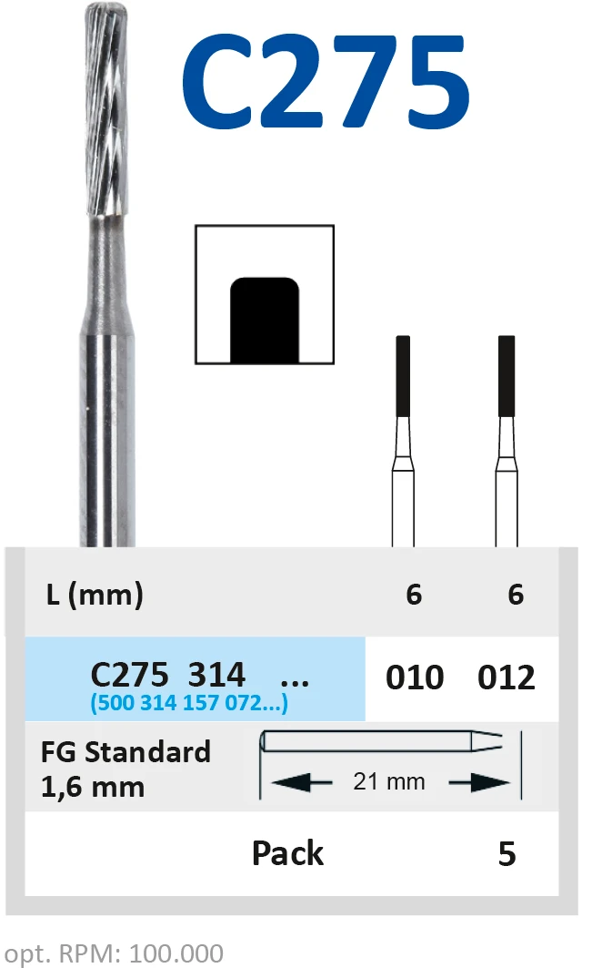Бор твердосплавный финир 12 граней C275314012 для турбинного наконечника.Форма бора - цилиндр (длина рабочей части - 6 мм, диаметр рабочей части (1/10 мм) - 012).