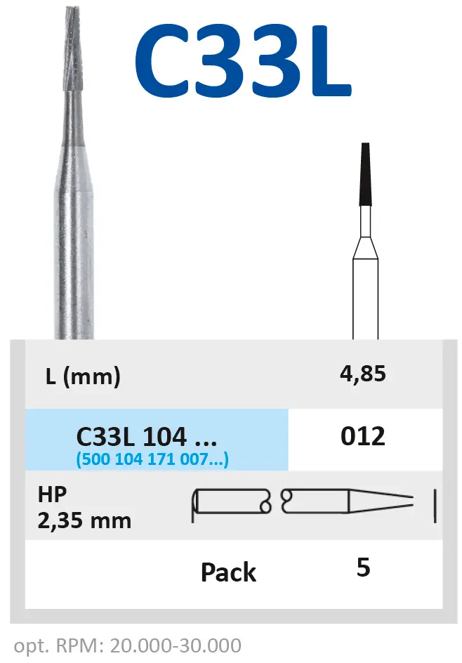 Бор твердосплавный C33L104012 для прямого наконечника.Форма бора - цилиндр (длина рабочей части - 4,85 мм, диаметр рабочей части (1/10 мм) - 012).