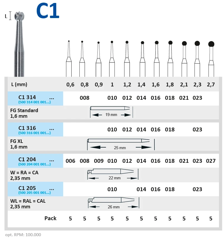 Бор твердосплавный C1205016 для углового наконечника.Форма бора - шар хирургическая длина (длина рабочей части - 1,6 мм, диаметр рабочей части (1/10 мм) - 016).