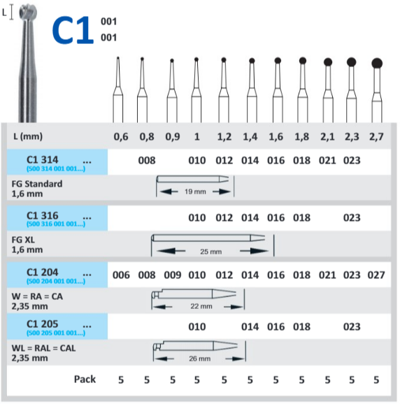 Бор твердосплавный C1314012 для турбинного наконечника.Форма бора - шар (длина рабочей части - 1,2 мм, диаметр рабочей части (1/10 мм) - 012).