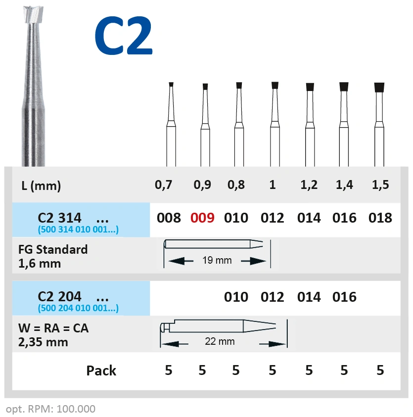 Бор твердосплавный C2314008 для турбинного наконечника.Форма бора - обратный конус (длина рабочей части - 0.7 мм, диаметр рабочей части (1/10 мм) - 008).