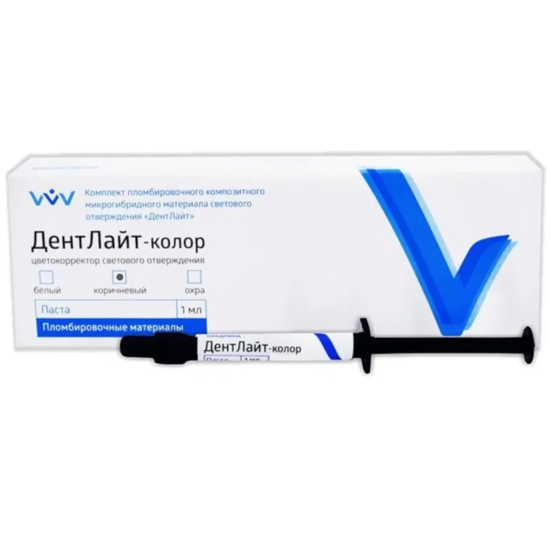 Цветокорректоры «ДентЛайт»-колор представляют собой низковязкие интенсивно окрашенные светоотверждаемые микронаполненные композитные пасты различных цветов, совместимые со всеми светоотверждаемыми реставрационными композитами.Цветокорректоры «ДентЛайт»-колор позволяют расширить цветовую гамму реставрационных материалов и придать еще большую естественность реставрации.