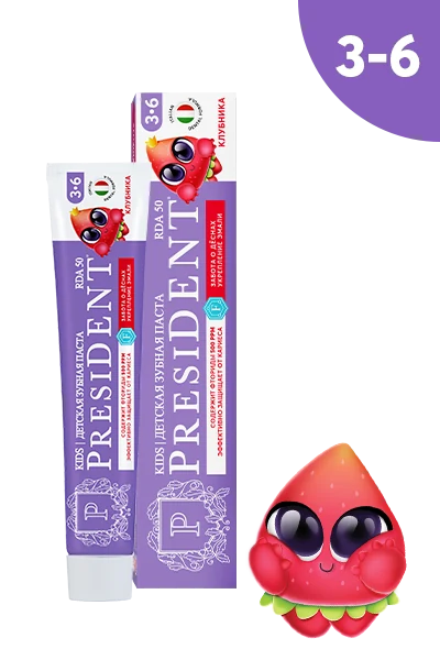 Детская зубная паста President 3-6 Клубника (50 RDA) с фтором, 70г