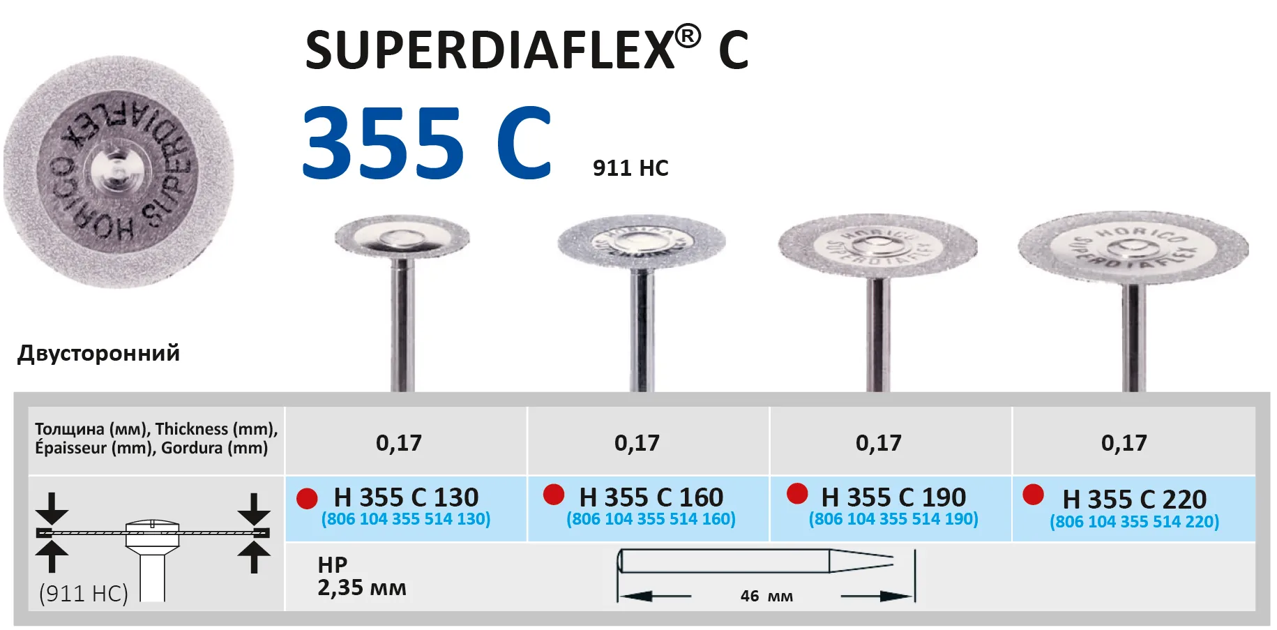 Диск алмазный, двухсторонний, очень гибкий для работы с керамикой и пластмассами.Диск для прямого наконечника, длина - 46 мм, толщина рабочей части - 0,17 мм, диаметр рабочей части - 19 мм.