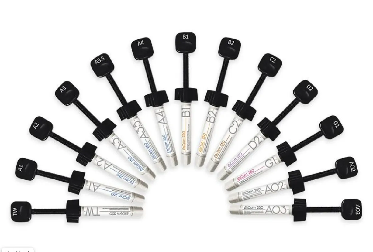 EsCom 250 - универсальный наногибридный композиционный материал. Благодаря использованию наполнителей как большого, так и малого размера, EsCom250 обладает меньшим износом и превосходной прочностью.Показания