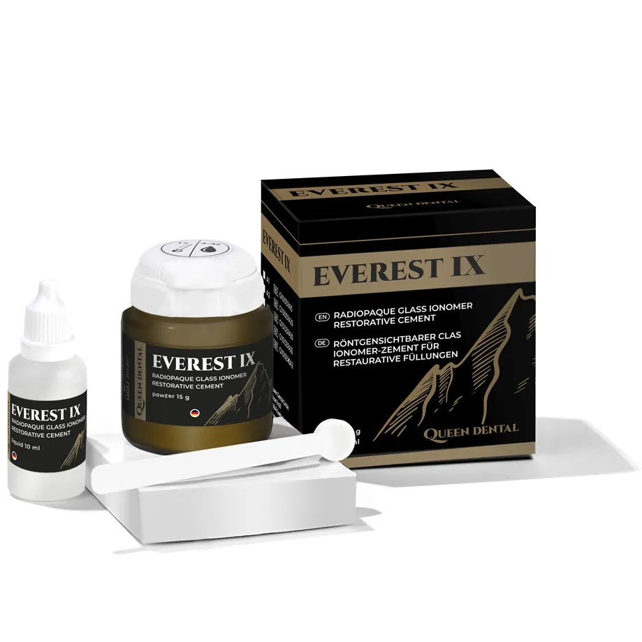 EVEREST IX — это стеклоиономерный рентгеноконтрастный материал для прямых реставраций, предлагающий повышенную износостойкость и надежность для реставраций класса I, II, III и V. Этот стеклоиономерный пломбировочный цемент обеспечивает идеальное решение как для молочных, так и для постоянных зубов, и поднимает планку ожиданий в сфере стоматологии.Назначение