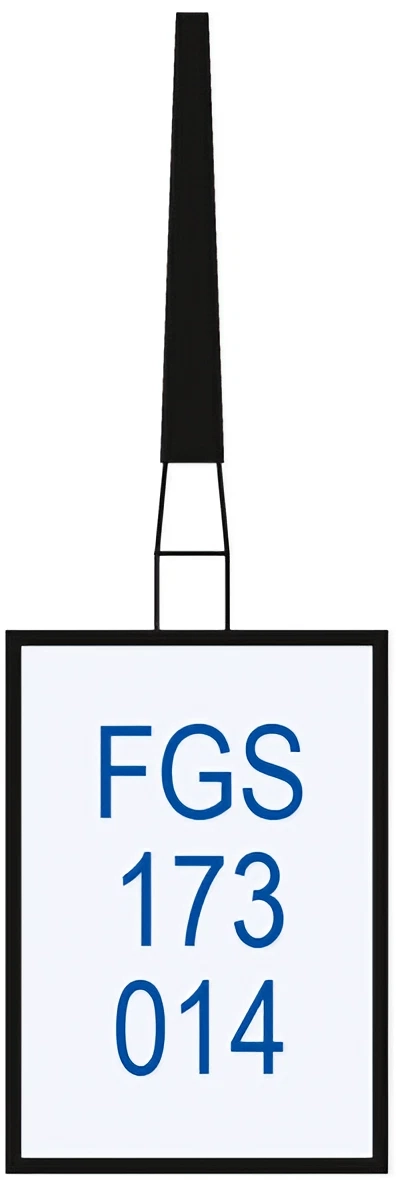 Алмазные боры на гальванической металлической связке для турбинного наконечника FGS173014.Форма бора - конус усеченный (длина рабочей части - 10 мм, диаметр рабочей части (1/10 мм) - 014).
