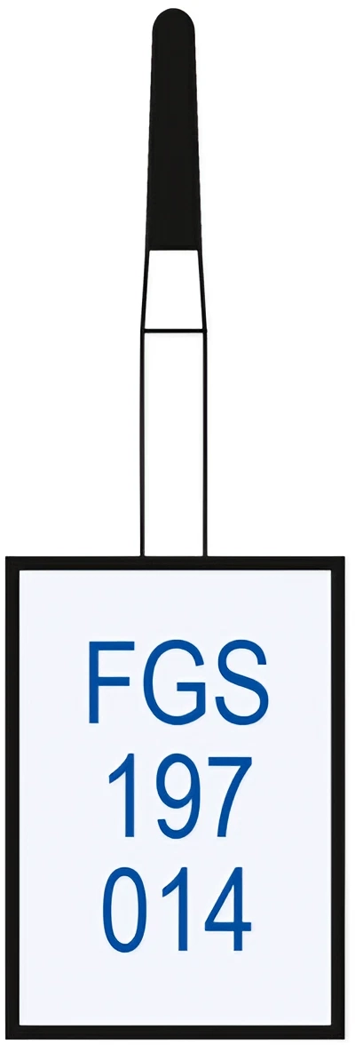Алмазные боры на гальванической металлической связке для турбинного наконечника FGS197014.Форма бора - конус закругленный (длина рабочей части - 6 мм, диаметр рабочей части (1/10 мм) - 014).