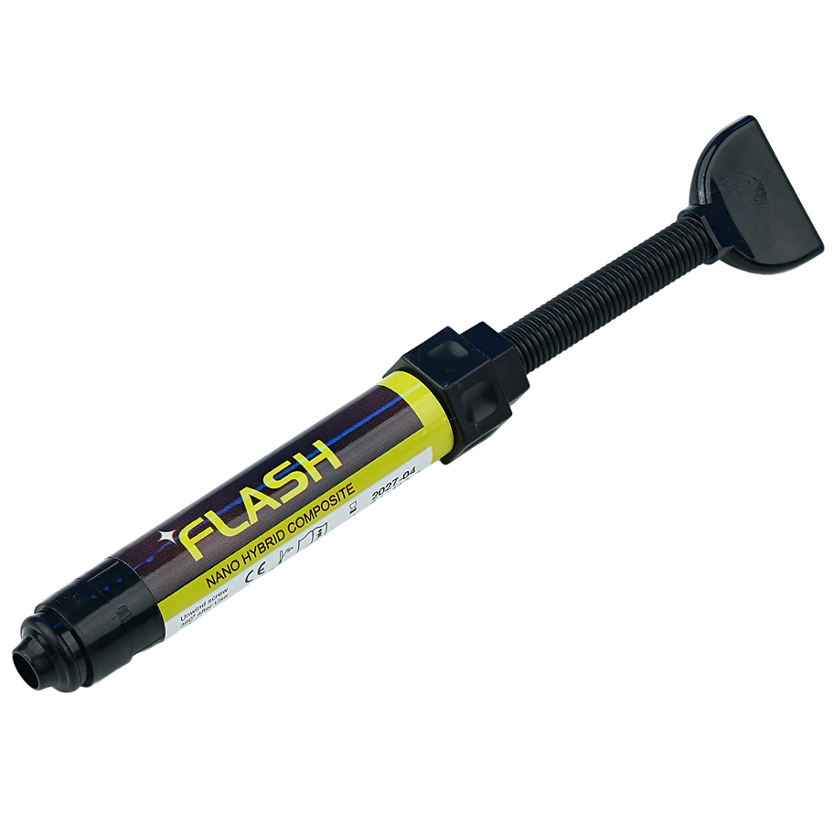 FLASH представляет собой наногибридный композитный стоматологический реставрационный материал на основе светоотверждаемой смолы для прямого и непрямого эстетического восстановления во фронтальном и жевательном отделах. Материал отличается великолепной износостойкостью и эстетикой. Все оттенки рентгеноконтрастны.Показания к применению