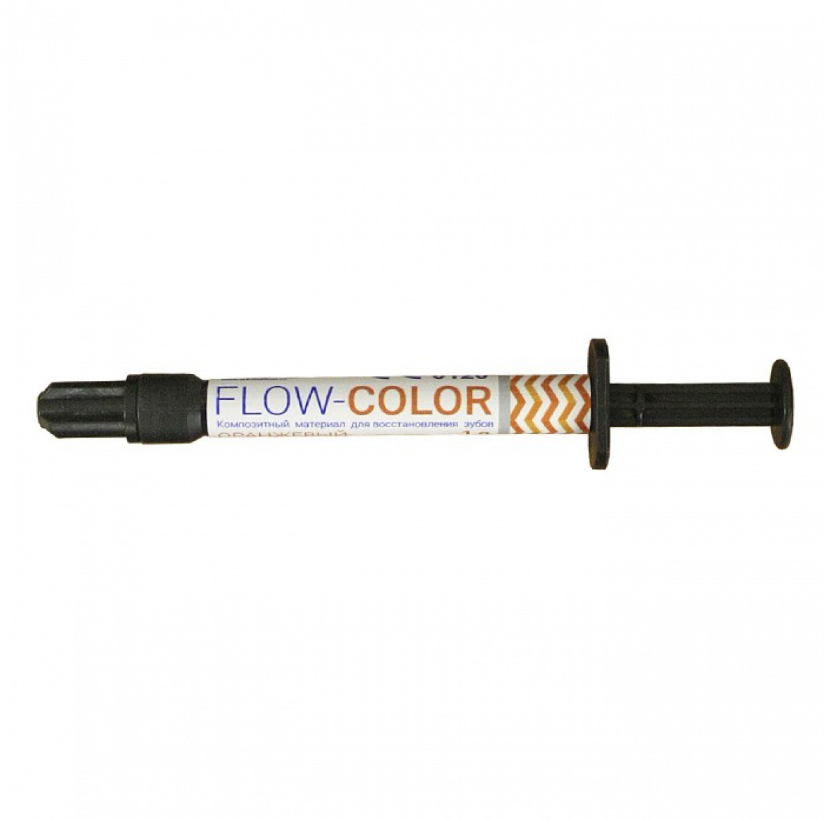 FLOW-COLOR – светоотверждаемый, микрогибридный, цветной композит типа «flow». Это сложный химический материал, состоящий из органической диметакрилатной матрицы (диметакрилат бисфенола А, уретановый диметакрилат, триэтиленгликольдиметакрилат), содержащей неорганические наполнители (стекло алюмоборосиликатное, пирогенный диоксид кремния) и дополнительные вещества (фотоинициатор, соинициатор, ингибитор, стабилизаторы, пигменты).