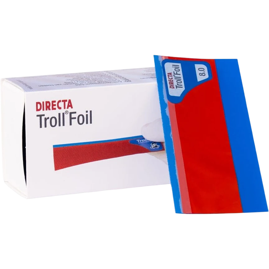 Каждый листок фольги TrollFoil защищен специальным тонким пластиковым слоем, который удаляется перед началом работы одним движением. Вы будете уверены, что красящее вещество останется только на зубах, а не на руках или на одежде.