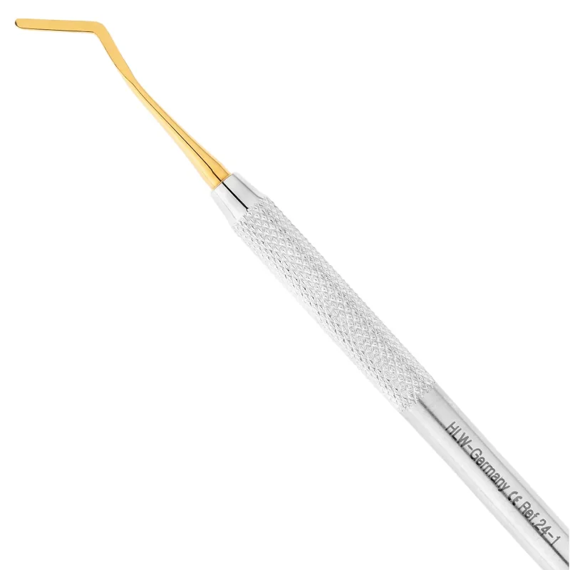 Гладилка с нитрид титановым покрытием 24-1* от компании HLW Dental Instruments применяется для нанесения и уплотнения пломбировочного материала, конденсации его к стенкам кариозной полости, а также для формирования пломб.