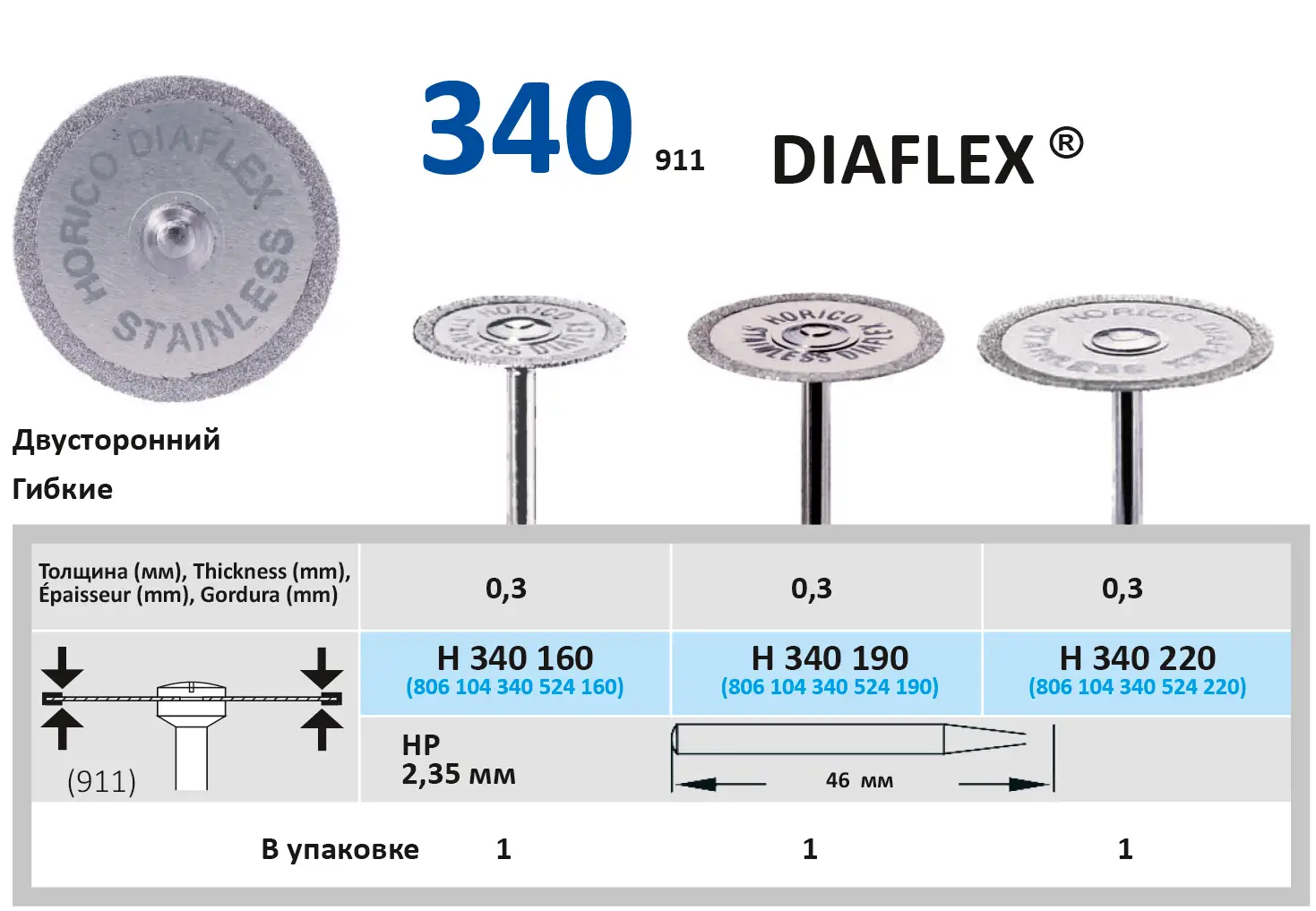 Диск алмазный, двухсторонний, гибкий для работы с керамикой, гипсом, пластмассой для виниров, полиуретаном, пластмассами и мягкими пластмассами для подкладок.Диск для прямого наконечника, длина - 46 мм, толщина рабочей части - 0,3 мм, диаметр рабочей части - 16 мм.