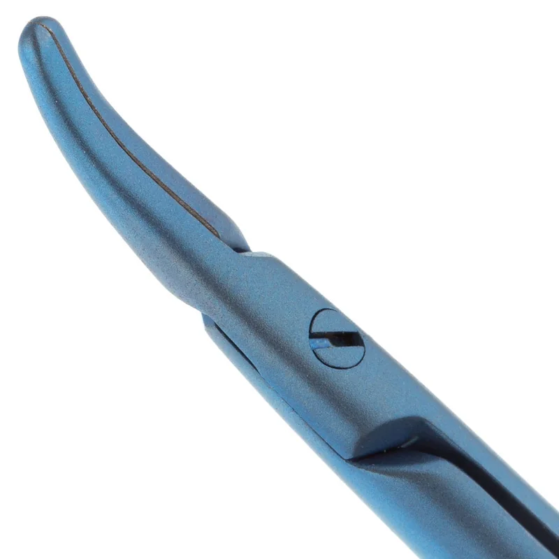 Иглодержатель микрохирургический, изогнутая рабочая часть, толщина ручки 8,5 мм, ширина рабочей части 1,2 мм, общая длина 180 мм, замок - L, титан.