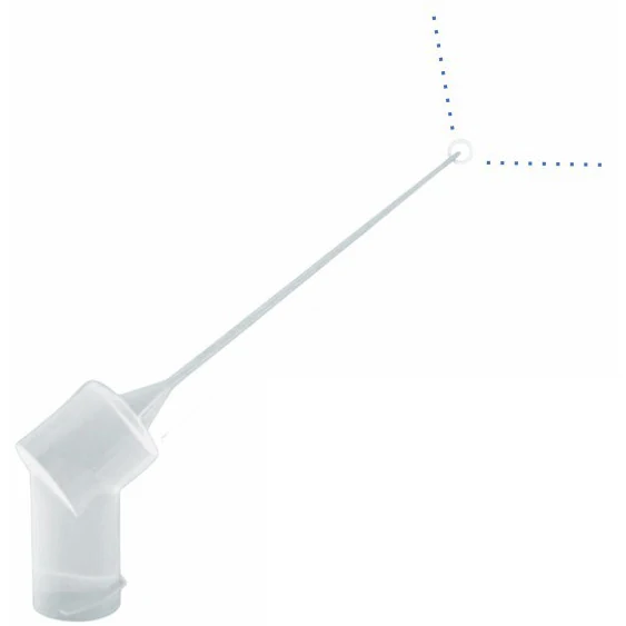 Пластиковые одноразовые иглы для ирригации. Модель с двумя отверстиями. Длина ирригационной иглы составляет 27 мм ± 3 мм, диаметр D — 0,3 мм ± 0,03 мм, конусность — 4%.