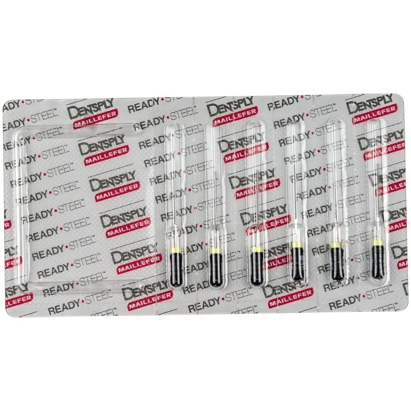 Инструменты серии ReadySteel поставляются в стерильных блистерах и предназначены для многоразового использования, т.е. могут быть повторно стерилизованы. Режущие части инструментов выполнены из нержавеющей стали и имеют силиконовый ограничитель для ограничения глубины прохождения канала.
