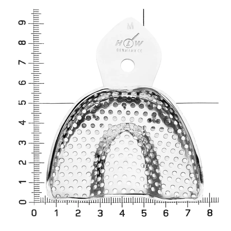Перфорированная слепочная ложка 33-18* размера M для верхней челюсти от немецкого бренда HLW предназначена для точного снятия оттисков в стоматологической практике.