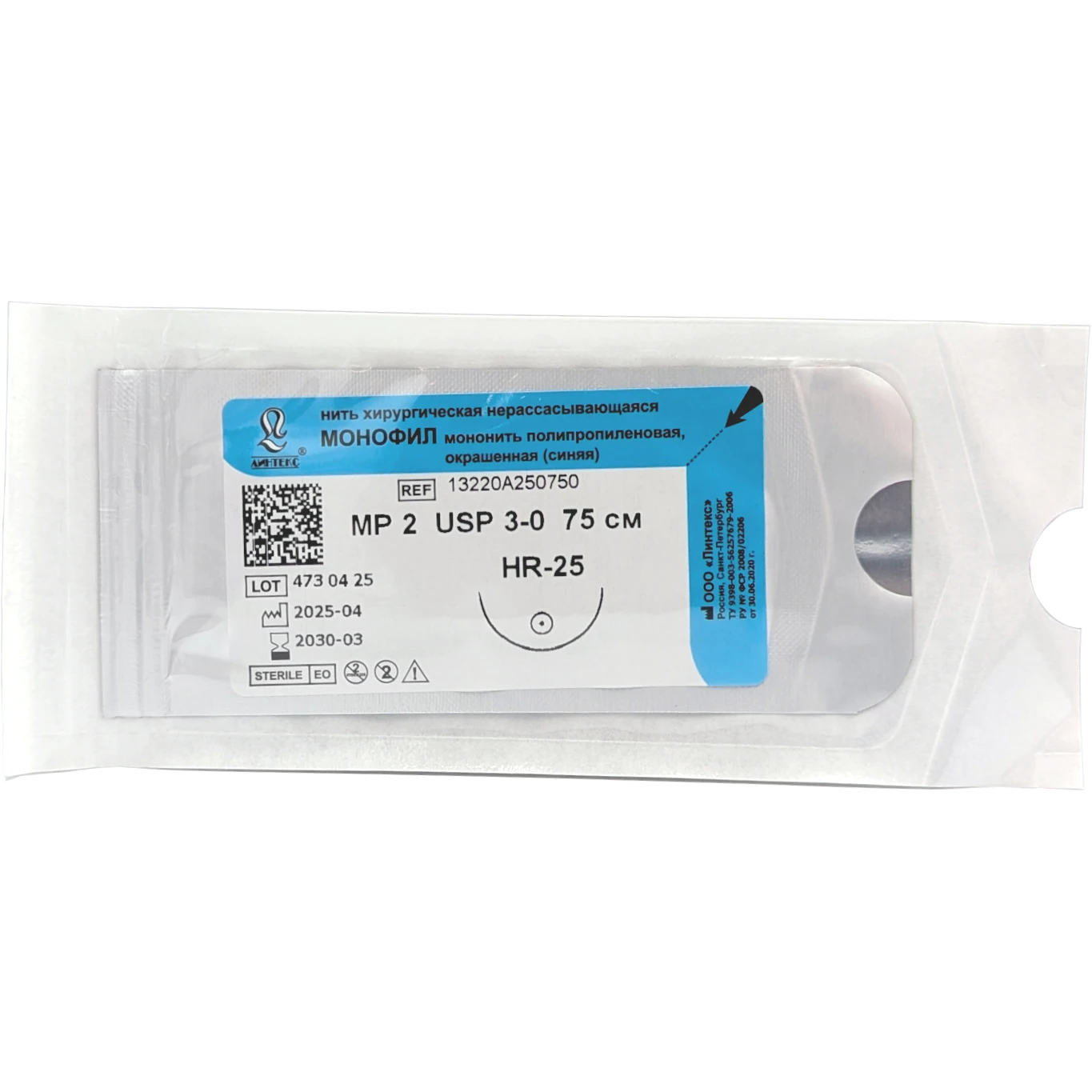 Монофил - нить нерассасывающаяся, L=75см, USP 3/0, HR-25, "Линтекс"
