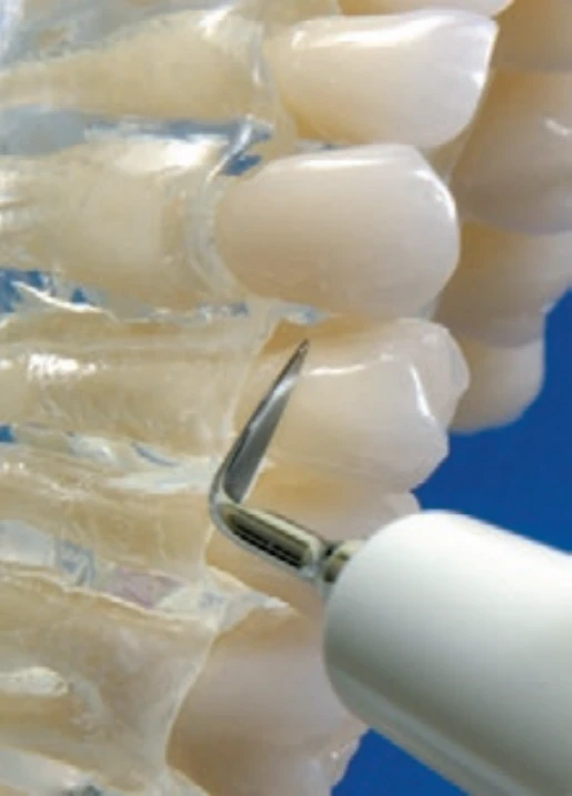 При пародонтологической нозологии (гипертрофический, фиброзный гингивит, пародонтит разной степени тяжести, пародонтальный абсцесс) может применяться в более глубоких карманах до 5 мм, с мягкотканной латеральной стенкой. Применяется для удаления зубных отложений на зубах крупного размера или для удаления крупных конгломератов твердых зубных отложений. Строго соблюдать режим мощности во избежание отлома кончика.