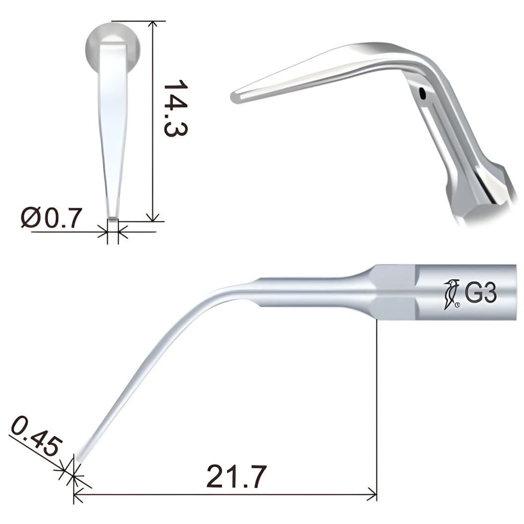 Насадка G3 применяется для удаления наддесневого налета во всех квадрантах, включая межзубные промежутки и десневые бороздки.