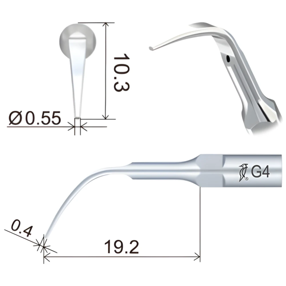 Насадка G4 применяется для обработки межзубных промежутков и для удаления наддесневого налета или камня.