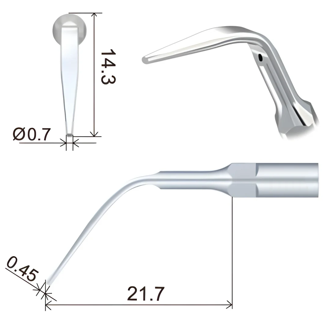 Насадка GD3 применяется для удаления наддесневого налета во всех квадрантах, включая межзубные промежутки и десневые бороздки.