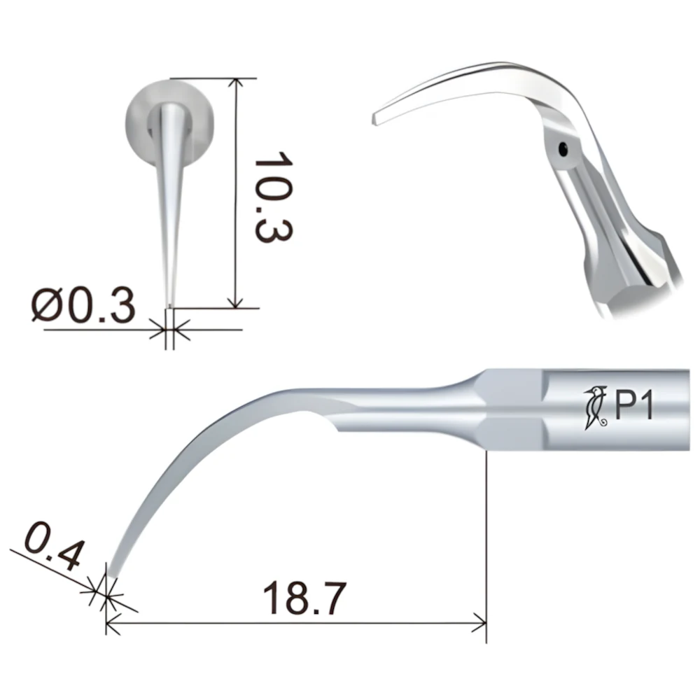 Насадка P1 тонкая и острая, рекомендуется для очистки и ирригации поддесневых отложений.