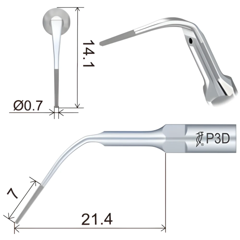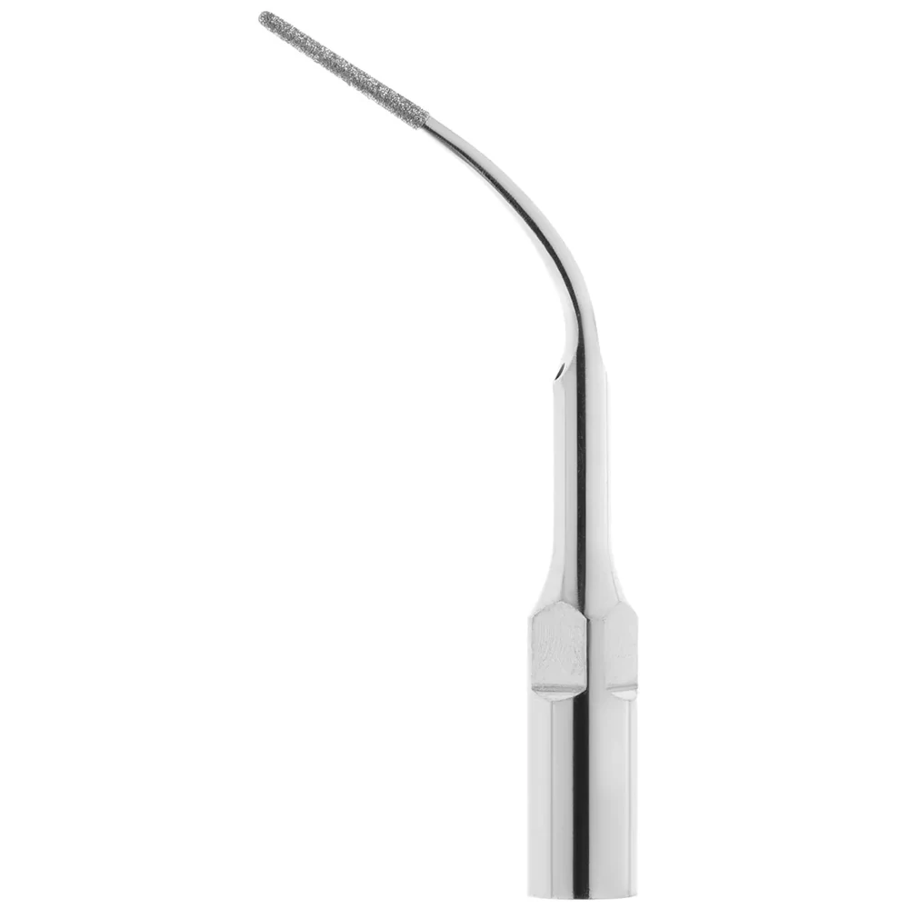 Насадка P3D с алмазным покрытием (40 мкм) для прикорневой очистки зубов после периодонтальной лоскутной хирургии. Он также используется для формирования краев коронки и для расширения фуркации зубов.