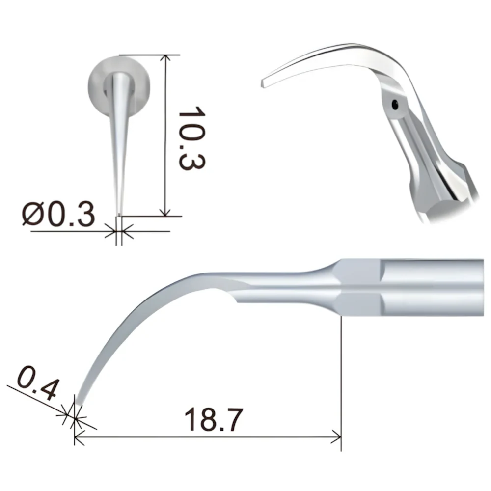 Насадка PD1 тонкая и острая, рекомендуется для очистки и ирригации поддесневых отложений.