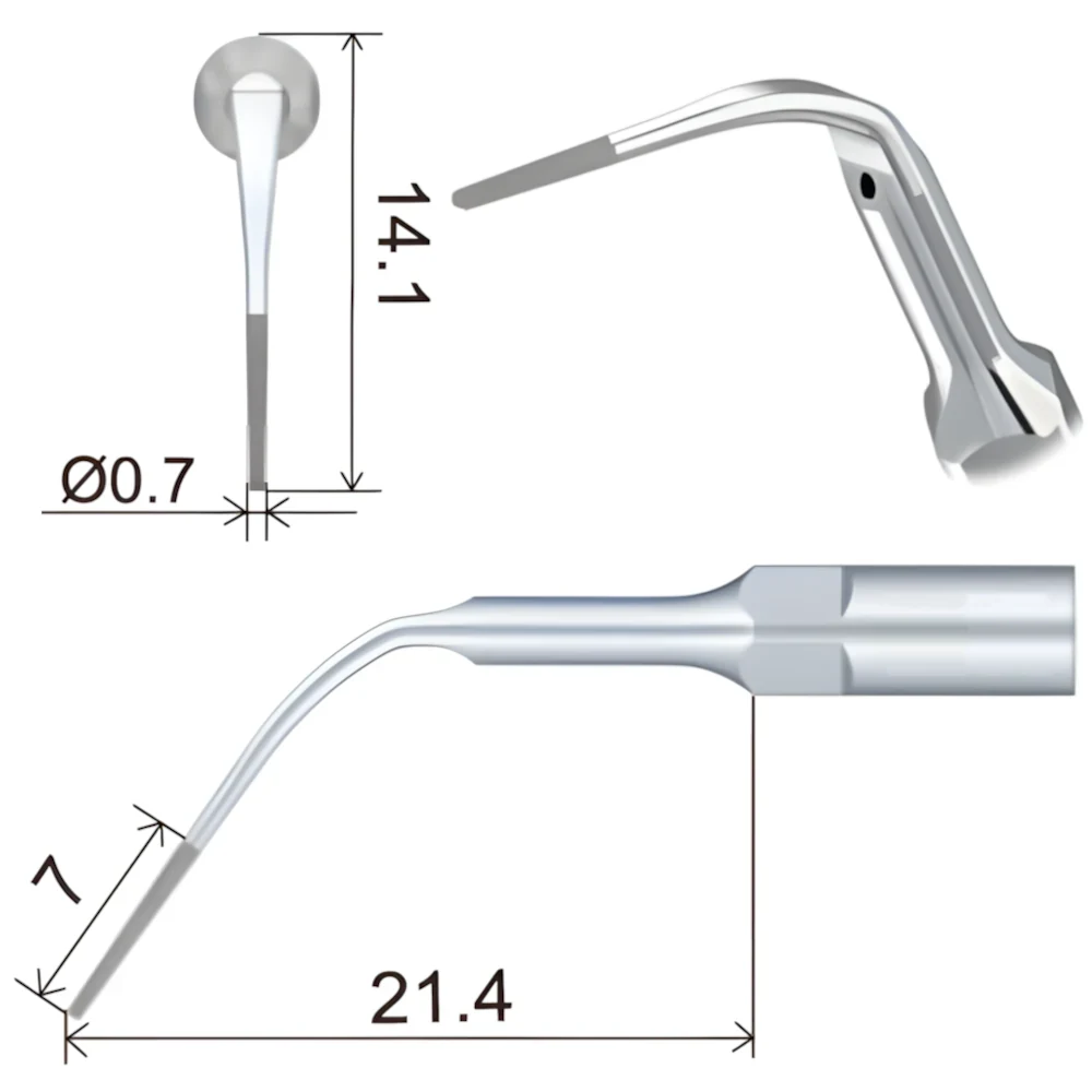 Насадка PD3D с алмазным покрытием (40 мкм) для прикорневой очистки зубов после периодонтальной лоскутной хирургии. Он также используется для формирования краев коронки и для расширения фуркации зубов.