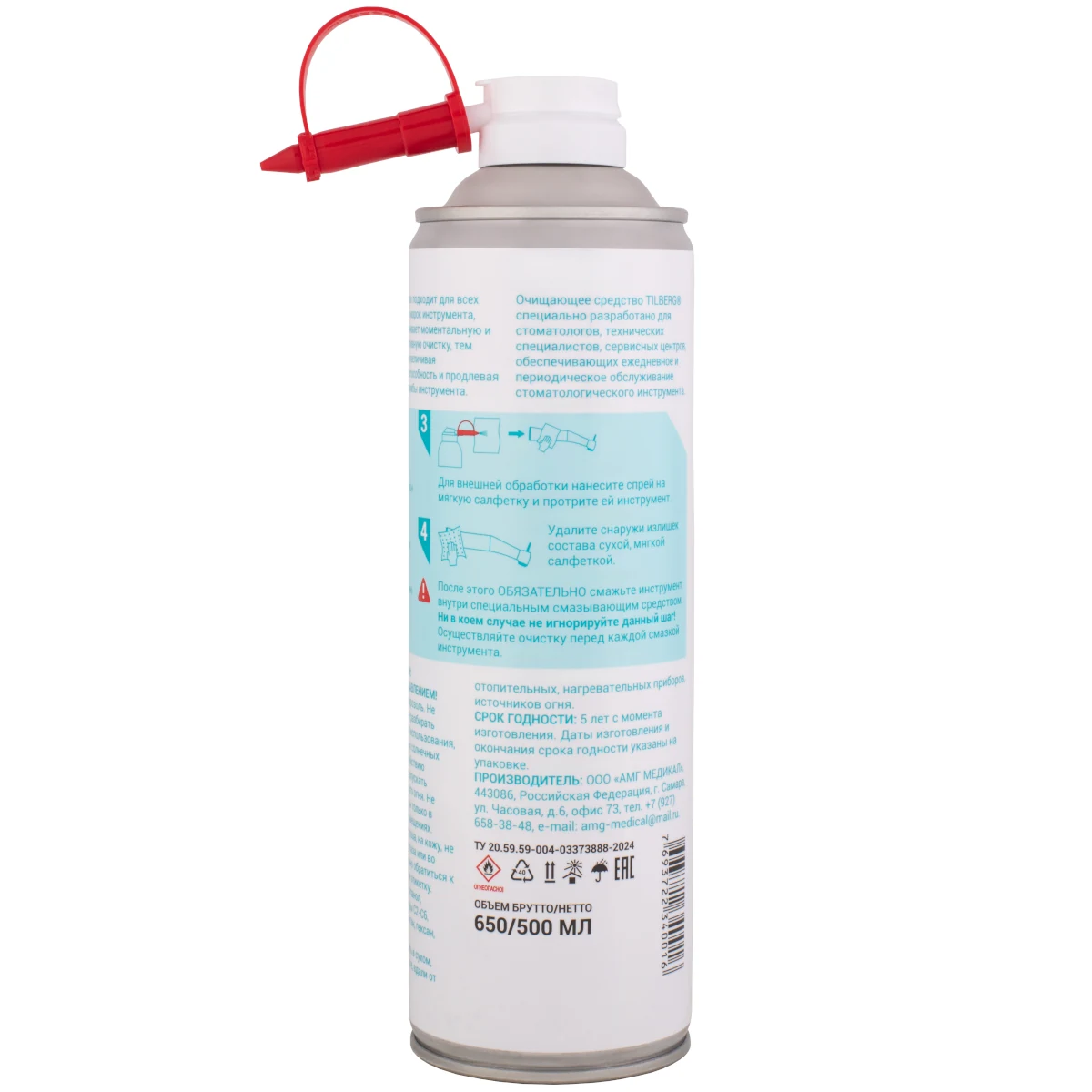 Очищающее средство в виде спрея марки TILBERG предназначено для профессионального ухода за прямыми и угловыми стоматологическими наконечниками, воздушными и электромоторами, шарикоподшипниковыми механизмами, прочим инструментом. Специальная формула эффективно удаляет остатки биоматериалов перед смазкой, растворяет стойкие загрязнения, остатки отработанного масла и дезинфицирует наконечники и микромоторы.
