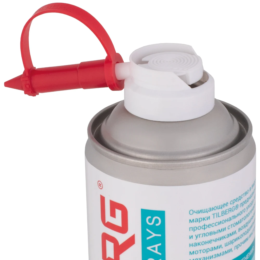 Каждый баллон очищающего спрея TILBERG комплектуется удобной насадкой, которая позволяет легким нажатием распылять средство, а также многофункциональным переходником TILBERG, способствующим профессиональной и комфортной очистке стоматологического инструмента.
