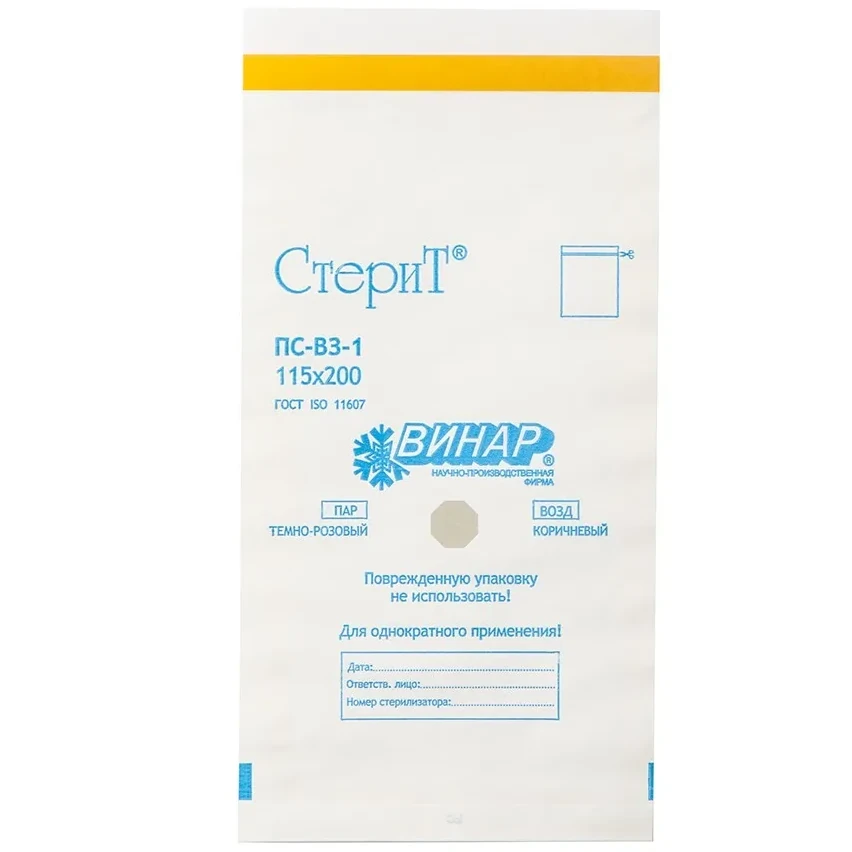 Пакеты бумажные «СтериТ» ПС-ВЗ-1, 115х200мм, 100 шт