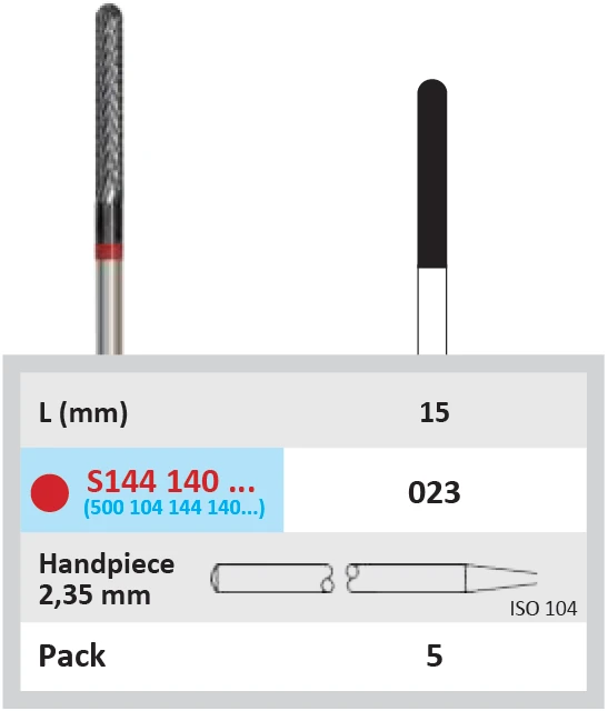 Длина фрезы - 44,5 мм, длина рабочей части - 15 мм, диаметр рабочей части (1/10 мм) - 023.