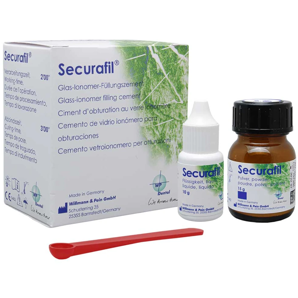 Securafil — это стеклоиономерный цемент для прямой реставрации полостей III и V классов, пломбирования при применении туннельного препарирования, а также пломбирования временных зубов. Его также можно использовать в качестве герметика для фиссур.Securafil хорошо сцепляется с эмалью и дентином, самозатвердевает и может быть отполирован через 15 минут. Цемент является рентгеноконтрастным и выделяет фториды в ткани зуба.
