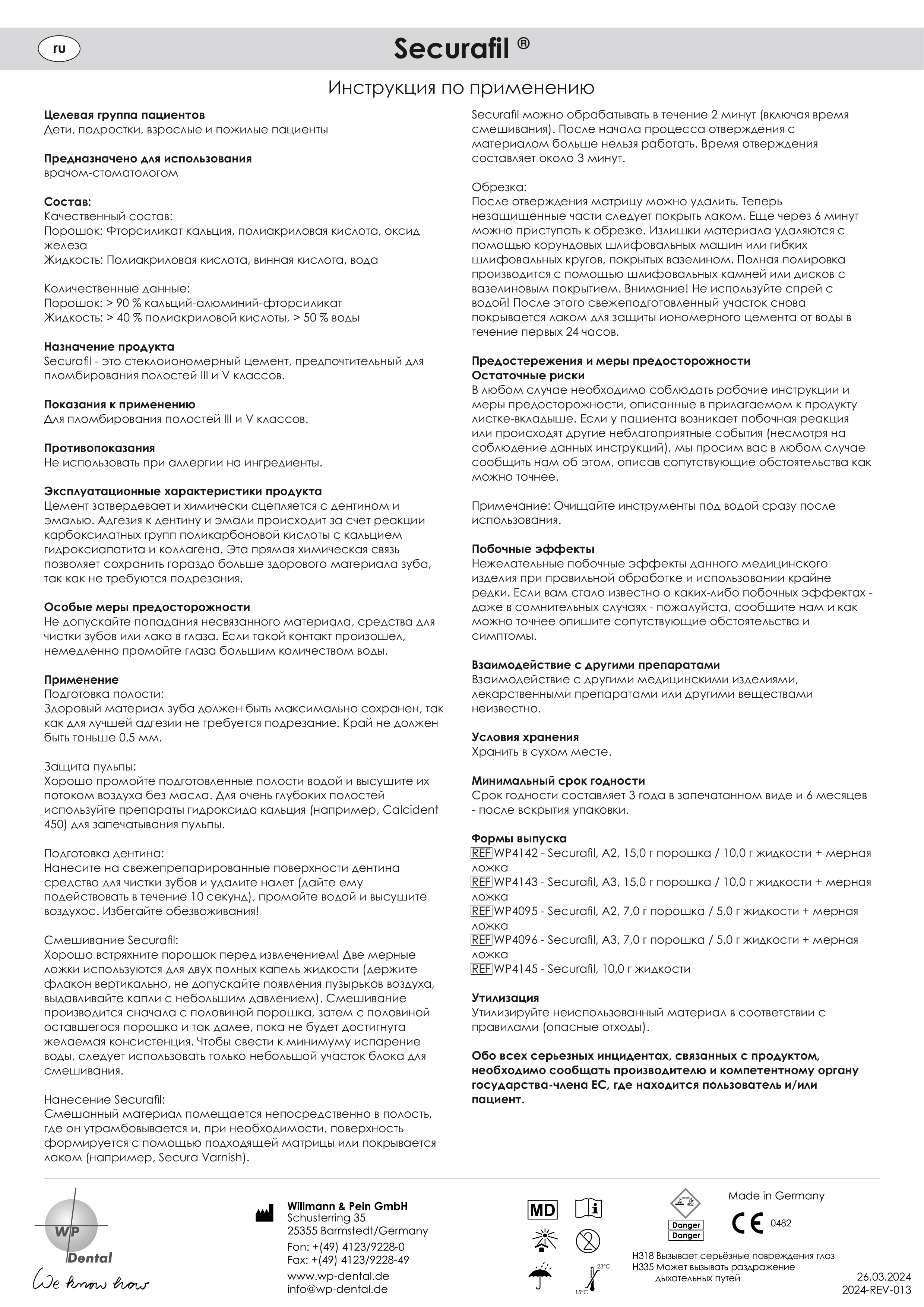 Securafil A3 - реставрационный цемент (15 г + 10 г) WP Dental