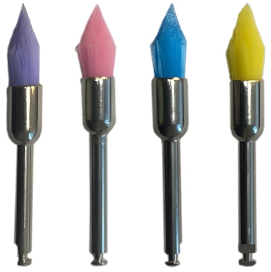 Щетки нейлоновые полировочные заостренные для углового наконечника EBP14CG-A (конусной формы) из нейлоновых нитей ассорти:- Очень мягкая - розовая.