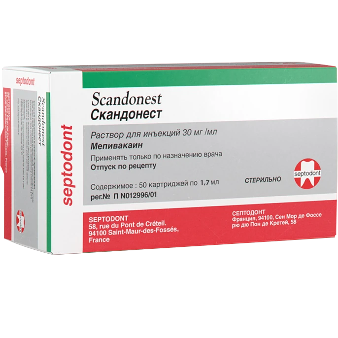 Скандонест — препарат для местной анестезии, активно применяется стоматологами по всему миру, в России аналогов не имеет. Легкая всасываемость (до 3 минут) и последующая длительность анестезии (до 20 минут) обеспечивают оптимальные условия для проведения кратковременных и нетравматичных операций.