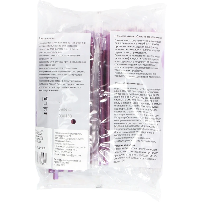 - Слюноотсосы стоматологические одноразовые предназначены для аспирации слюны из полости рта пациента.