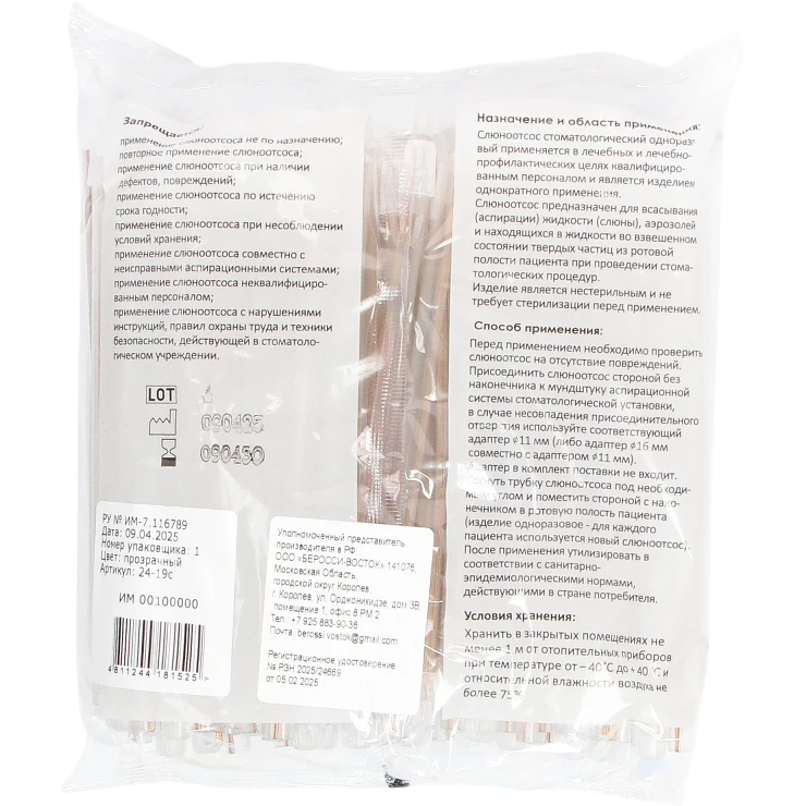 - Слюноотсосы стоматологические одноразовые предназначены для аспирации слюны из полости рта пациента.