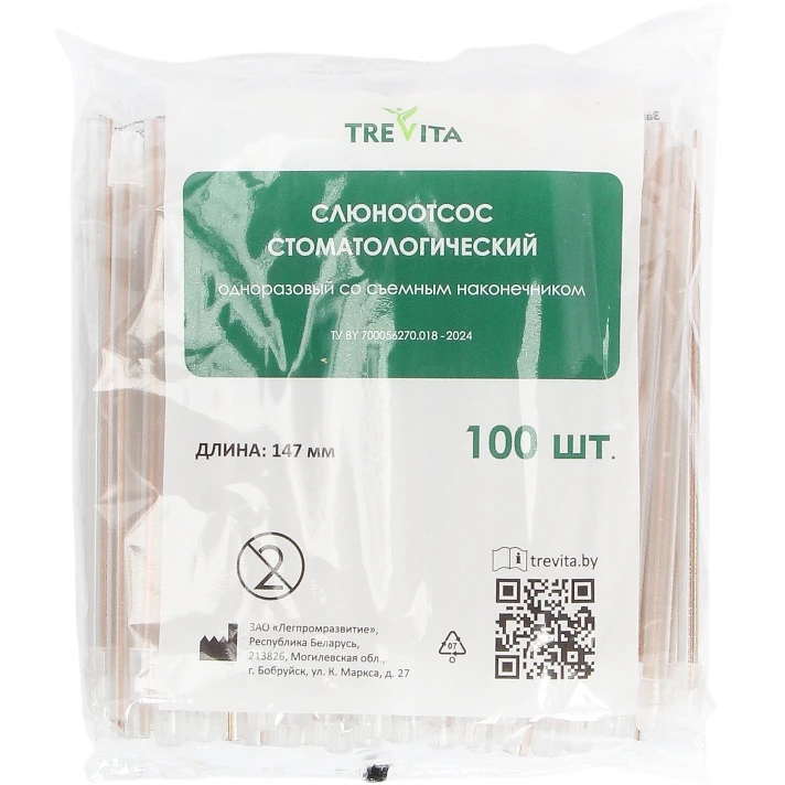 Слюноотсос со съемным наконечником прозрачный (100 шт) Trevita