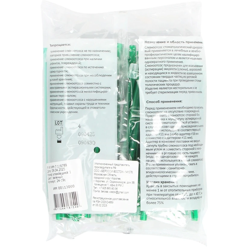 - Слюноотсосы стоматологические одноразовые предназначены для аспирации слюны из полости рта пациента.